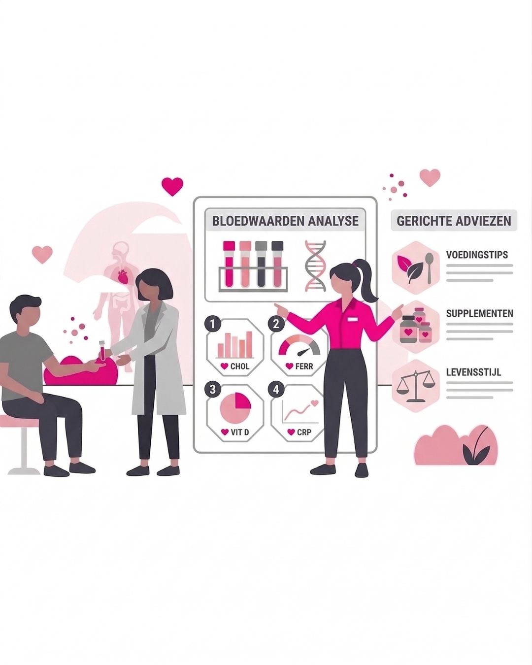 Een gezondheidscoach begeleidt je naar een betere gezondheid door verder te kijken dan alleen symptomen. In plaats van een standaard advies, wordt er gekeken naar jouw lichaam als geheel. Annely werkt als orthomoleculair diëtist vanuit een combinatie van reguliere diëtetiek en orthomoleculaire geneeskunde. Wetenschappelijke voedingskennis wordt aangevuld met inzichten over hoe voedingsstoffen, hormonen en lichaamsprocessen met elkaar samenhangen.
